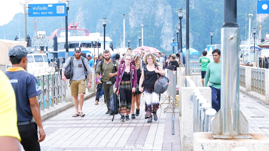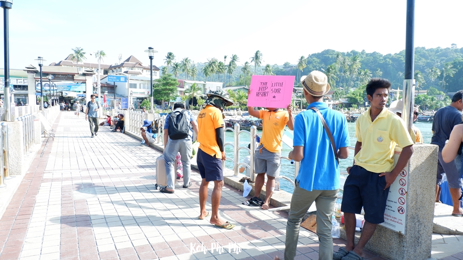 Ton Sai Bay pier, when we arrived here, the resort staff held a sign waiting for us at the pier and helped us carry luggage to the resort. We had to make an appointment with the staff to wait for us at the pier.