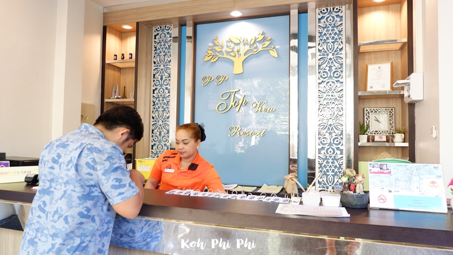 We walked for a moment and arrived at our resort. This time we were booking at Phi Phi Top View Resort. It is a new resort that opened for service within 2 years. We completed check-in and went to our room. It was really high like we were on a real mountain. When we were booking, we didn’t know that it would be that high.