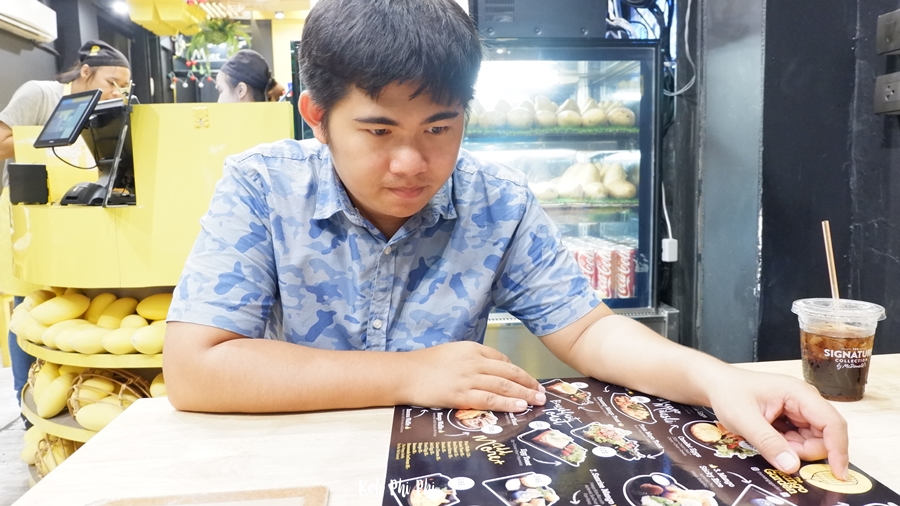 We looked for menus. What should we eat? It had Honey Toast, but we chose Mango with Sticky Rice 1 set instead.