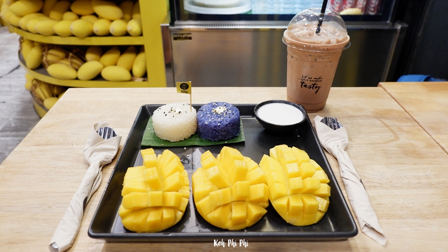 We already booked a boat for tomorrow's trip, so we walked around. We passed by and saw the Mango Garden restaurant. It was a restaurant about Mango with Sticky Rice, so we stopped by. Let’s see if it looks tasty enough.