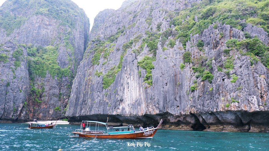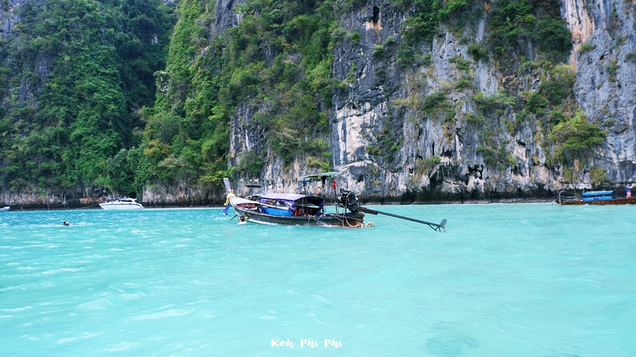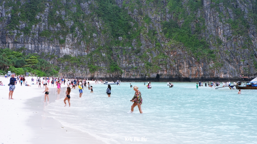 Even if we got out early, there were still a bunch of people. If we came on a join trip… Well, I don’t want to talk about it. I thought in my mind that I was glad to choose a long-tailed boat, since there were not a lot of people. Maya Bay has clear water and fine white sand. Andamun is like a heaven for Thai people.