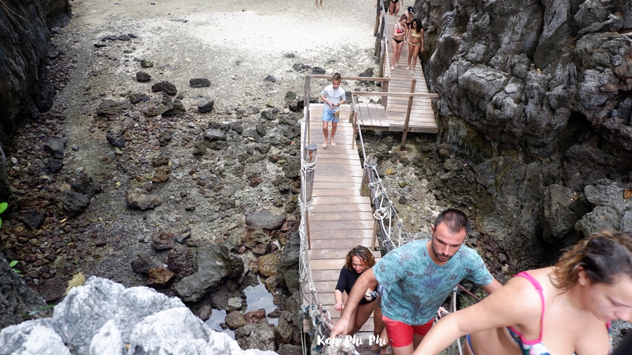 We came to the back. It is a ladder to the view point “Loh Samah Bay” that is a famous spot for diving on islands of Koh Phi Phi.