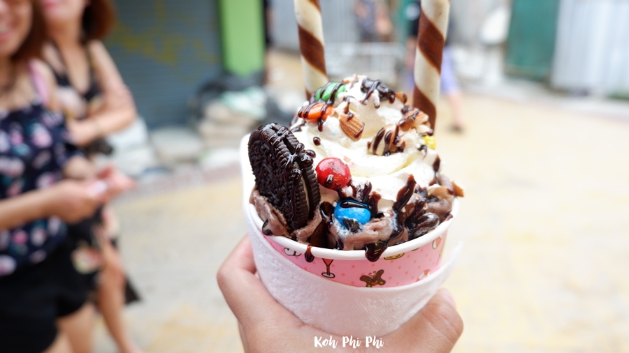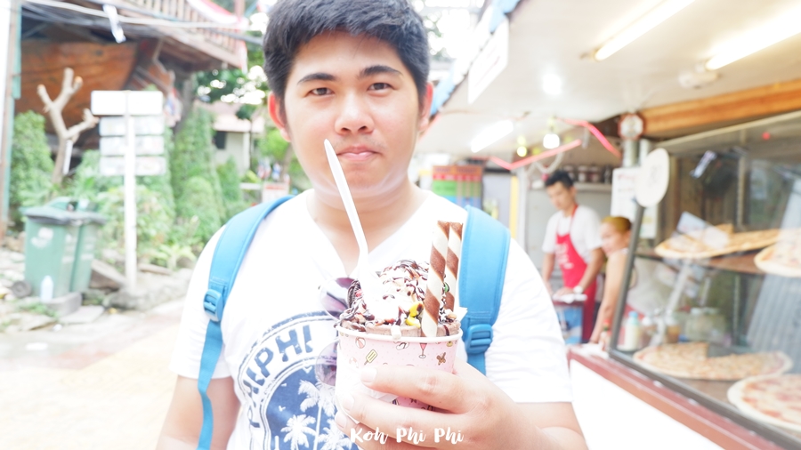Let’s cool down with stir-fried ice cream for 100 Baht. It’s his favorite.