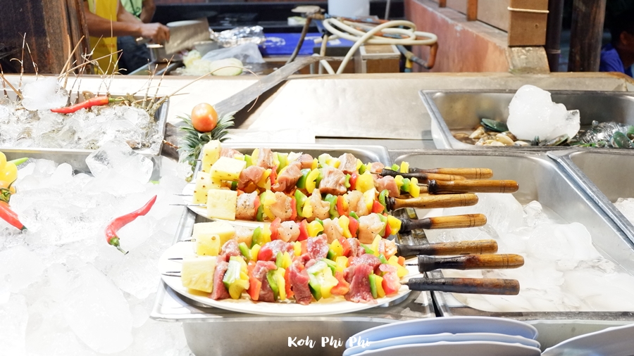 This is the evening atmosphere at the resort. After we finished taking a bath, let’s find dinner at the market. The food on the island had a lot of restaurants to choose from.