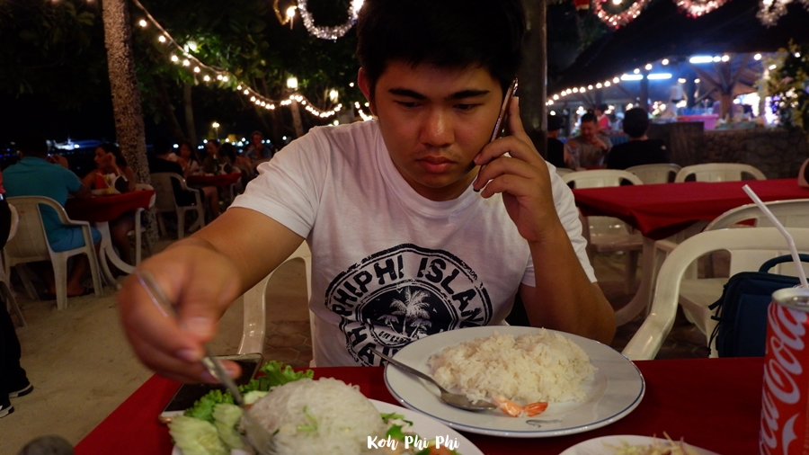 It was delicious for me, so I ate it until I was full. I went to take a bath because I was really hot. In the evening, I will take you to the walking street center of Phi Phi Don.