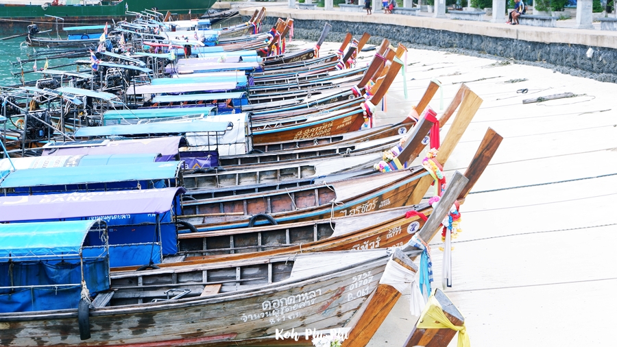 The atmosphere in the area of Ton Sai Bay pier. It had long-tailed boats docking in a line waiting to serve the tourists.