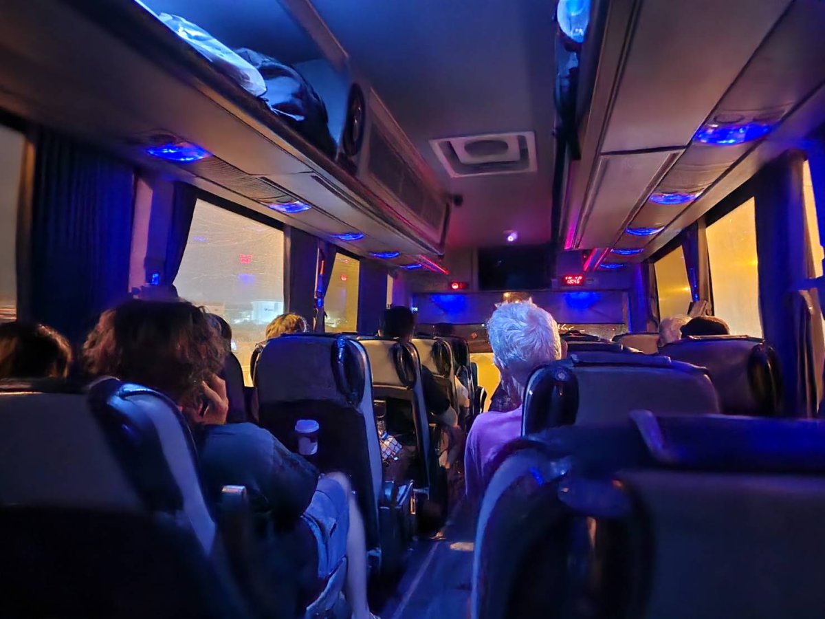 The buses provided are air-conditioned buses with approximately 40-44 seaters, with restrooms and a 20-minute break at a stopover point for a bus