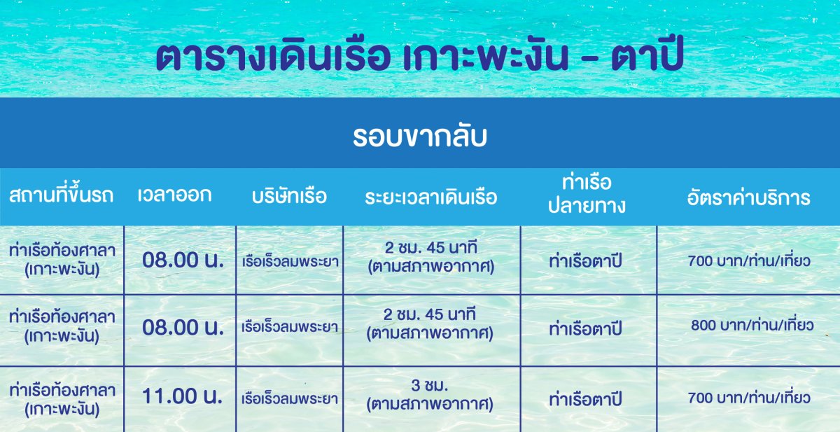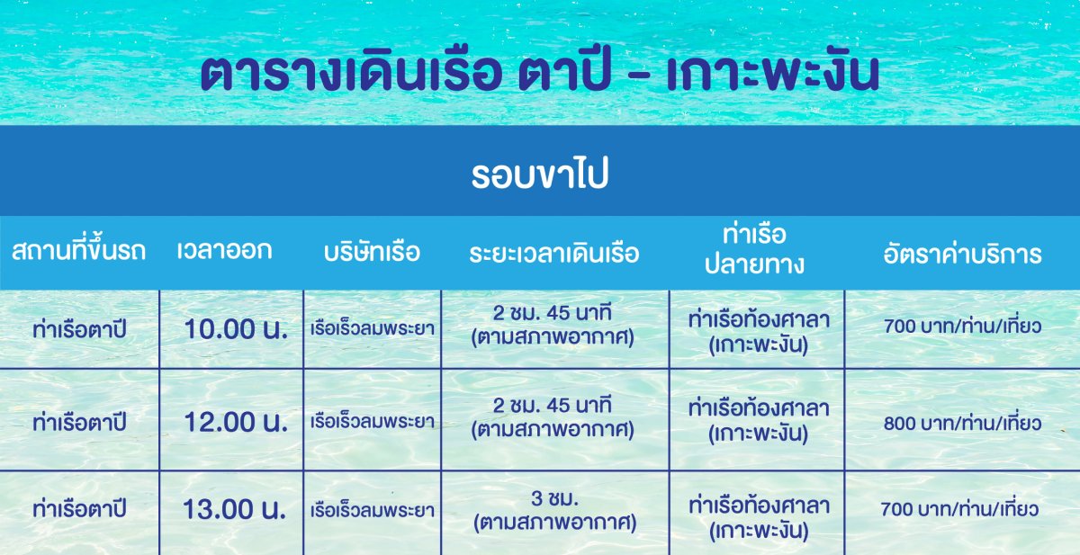 Boat from Tapee pier to Koh Phangan Round boat from Tapee has only 1 round, which other rounds will be a bus service from Tapee pier to get on a boat at Donsak.