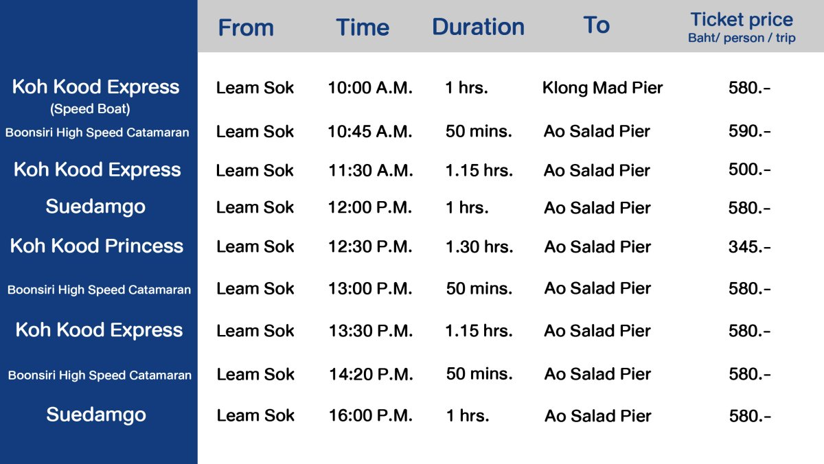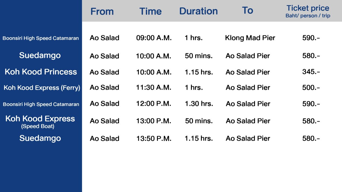 Boat schedule to Koh Kood updated in 2024. Call 0969458850.
