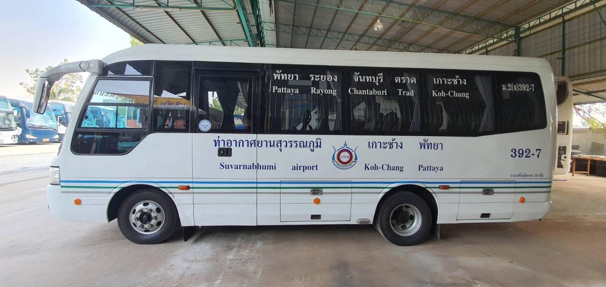 Buses belong Suvarnabhumi Burapha and Suedamgo Companny Which is  mini-bus about 30 seats (NO restroom) The bus will stop once for passengers to use the restroom.