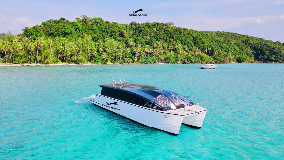 Kind of Suedamgo's boat is medium sized Catamaran. it seems speedboat and contains passenger about 80 persons. It has a air conditioned room, and use 1 hour for departure Laem pier to Koh Kood.
