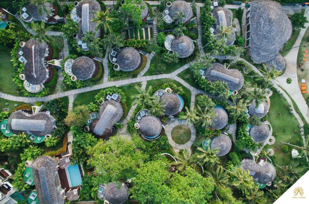 Cham’s House Koh Kood Resort is a resort that will bring you to the beautiful Trat sea. It mixes with nature smoothly. The resort is located by the front beach. The sand is tidy and has some rocks around. You can play in the water at the resort’s beach immediately. It’s a Bali style resort located in Klong Hin. The name of the resort is from the Cham that live in the south of Vietnam. This resort is built in a brae. It has a room for service for 53 rooms. We can classify them like this.
