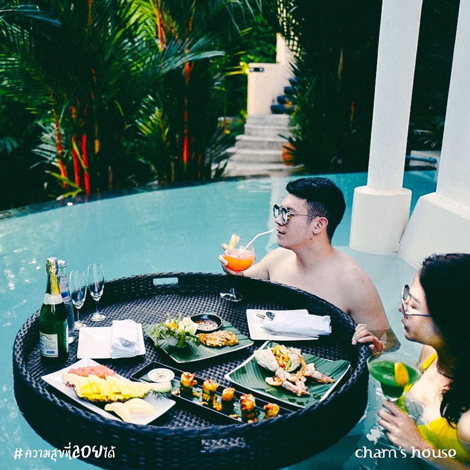 We’re ready to serve you the floating delicious “Cham’s House Private Floating Brunch” which has both food and drinking services in a chic floating tray that will surely upgrade your coolness of the relaxing trip.