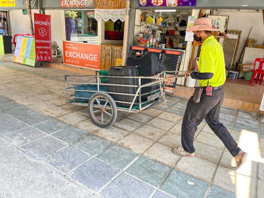 Traveling to the resort on Phi Phi Island. Tourists can walk only. There are no buses on the island. Some resorts and accommodations will have staff waiting to pick you up at the pier to help carry your baggage to their accommodations