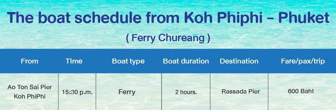 The boat schedule from Phuket to Koh Phi Phi Island and return