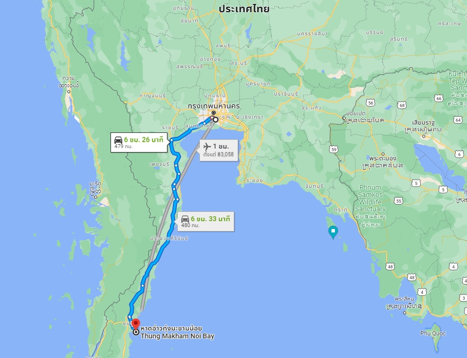Traveling to Thung Makham Noi Pier, Chumphon Province.You can drive your own car to the pier if you drive from Bangkok. It takes 7 hours (480 kilometers) to Thung Makham Noi Beach, Chumphon by private car