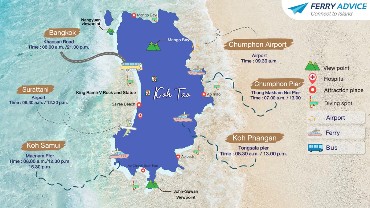 Timetable : Shuttle buses from Chumphon Airport and boats to Koh Tao Island