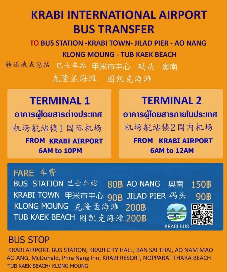 After we arrived at Krabi international airport, let’s walk in front of the airport to take a shuttle bus to town or Ao Nang. Bus route > Krabi airport > Krabi town > Ao Nang Krabi.