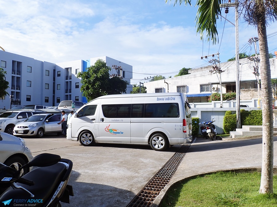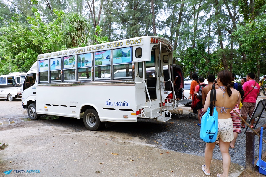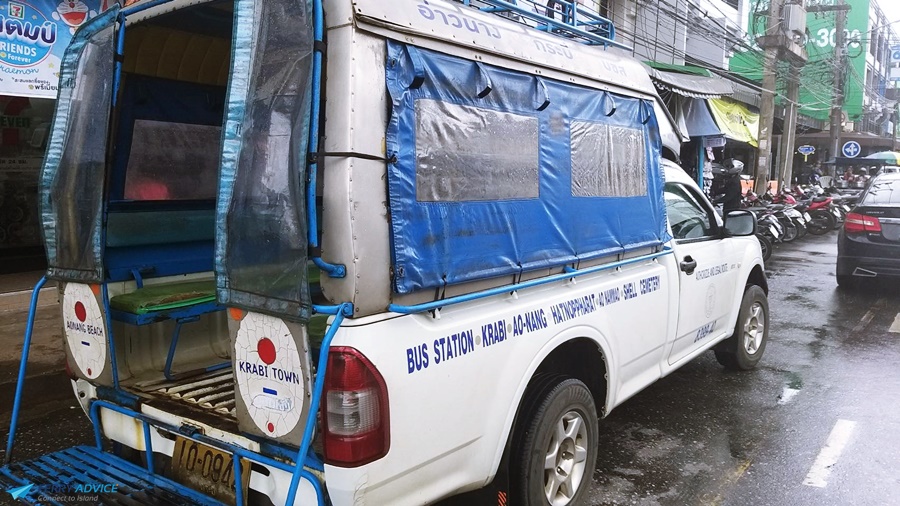 Inside the van has 12 seats. The van will take other passengers on the way. for those who buy a tour package at the Rung Tawan office and take time approximately 30 minutes from Krabi to Ao Nang.