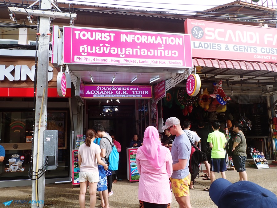 Ao Nang is popular for tourists near with many small islands, and there are many shops. We come to ao nang to buy a tour for four islands which are Phra nang cave, Railay beach, Thale weak (sandbank) and Koh Poda.