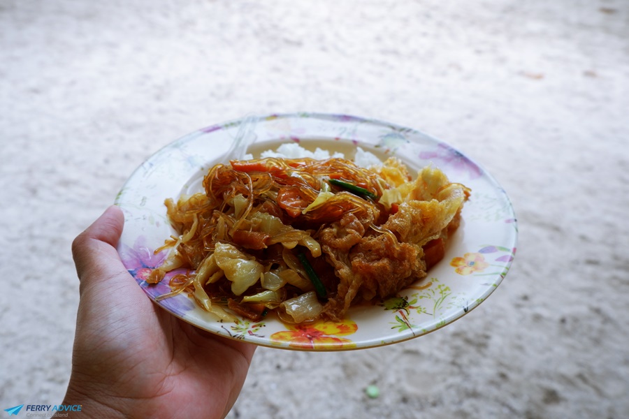This is the food from package tour, there are fried chicken, chicken soup and stir fry glass noodle. The flavor of food is not spicy for foreigner. After having lunch we will go back to Ao nang.