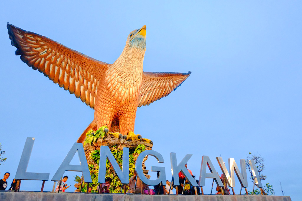 After arrival at Kuah jetty. The first thing you'll notice while dragging your bags through immigration is Giant Eagle at Eagle Square or Dataran Lang, the symbol of Langkawi, located on the seafront welcomes visitors. Legend has it that "Langkawi" comes from the eagle or "Helang" in Malay, while the word "kawi" means a reddish brown color, so Langkawi means a reddish-brown eagle