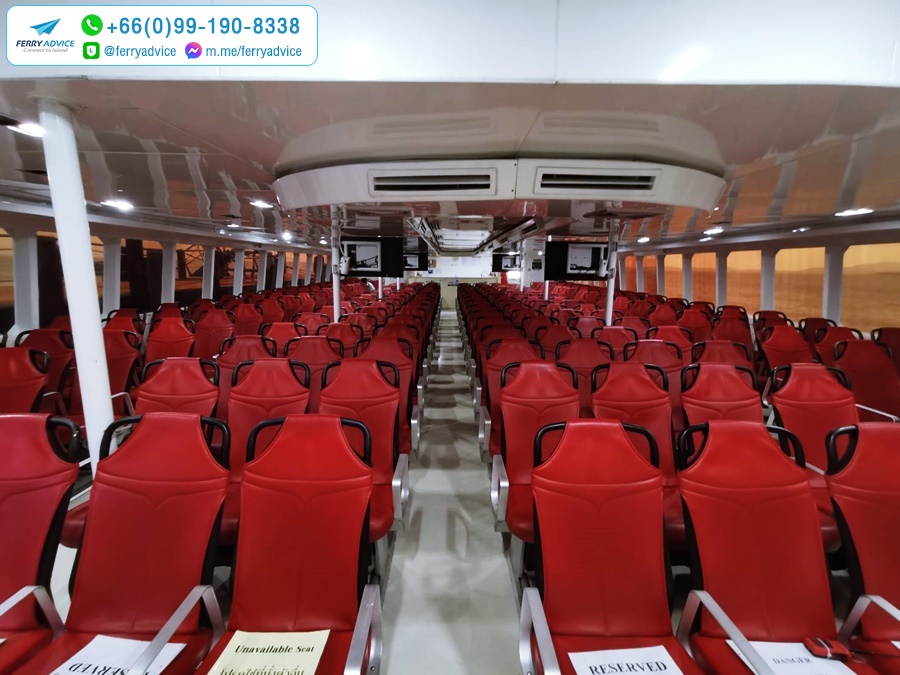The interior is air-conditioned rooms with a total of 3 floors and can accommodate 300-400 passengers. There are also seats at rooftop catamaran for those who need to relax in the outdoor zone.