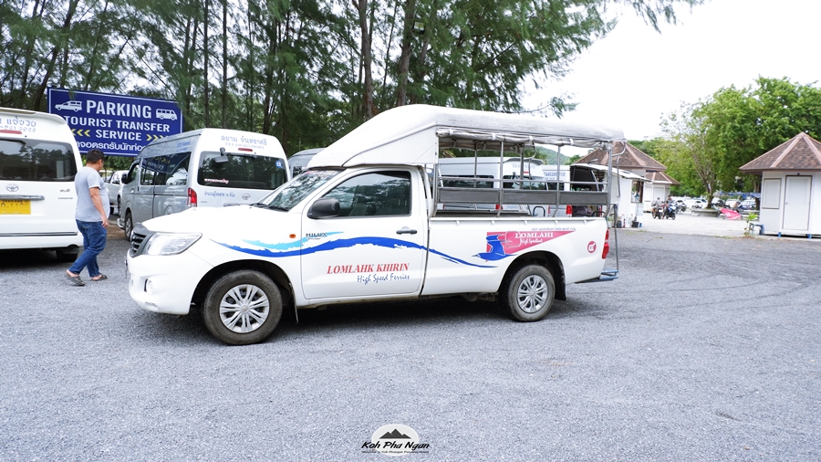 We use Lomprayah’s car. This is a minibus service to take passengers to the resort reservation. We stay at Koh Maa Beach Resort.