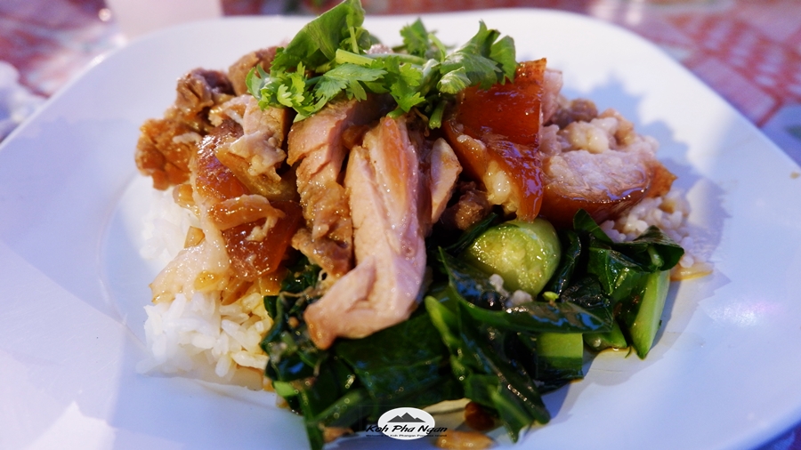 Dinner on Koh Phangan, this meal is very simple. Pork leg with rice and chicken with rice.
