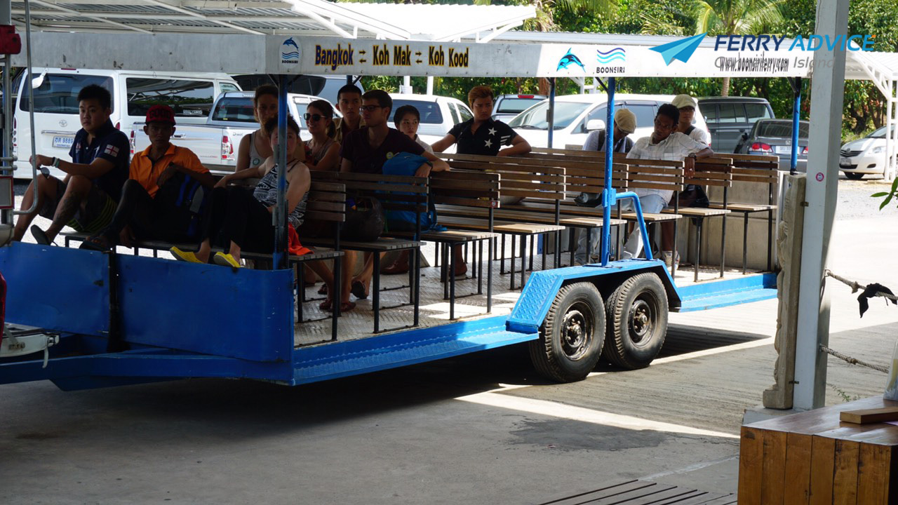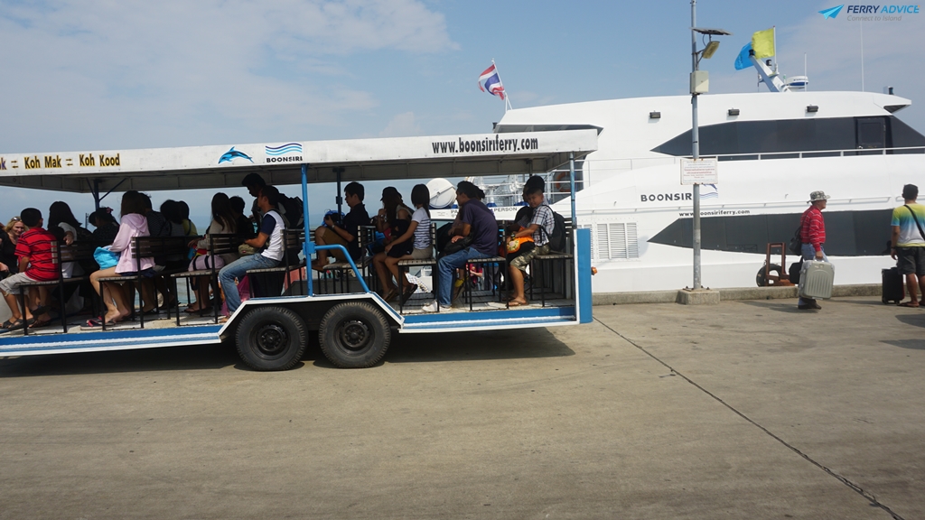 The ferry take time 1.30 hours. Cause final trip, the ferry will take traveler to Koh Mak as well. After that, the ferry will keep on the way to take traveler to Laem Sok terminal. Tram will take us to lobby of Boonsiri.