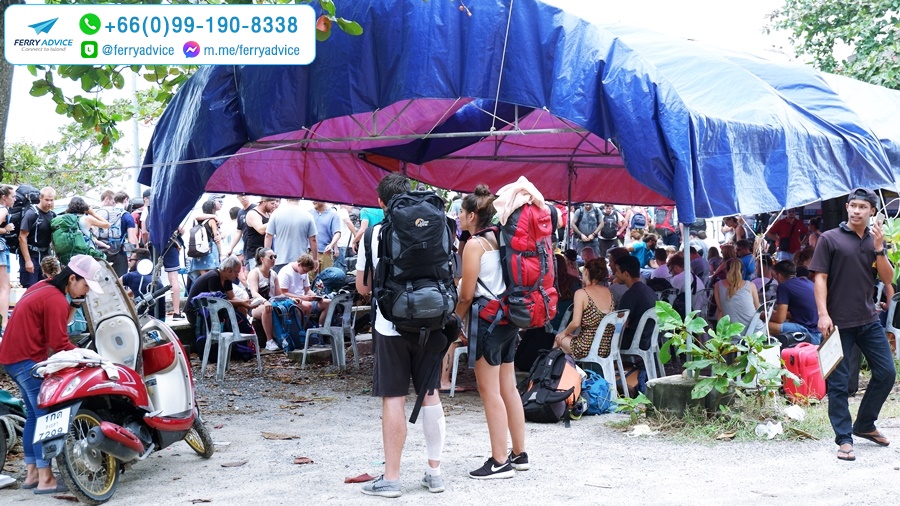 After passengers check-in at counter, then let's walk to boarding area at Thong Sala Pier about 500 meters.