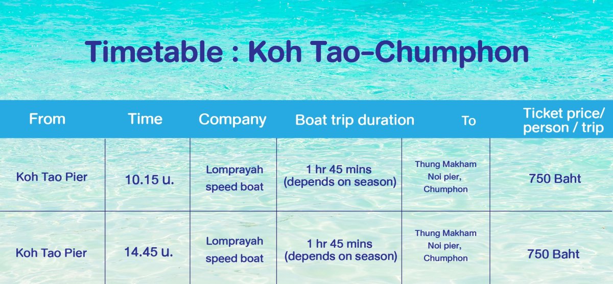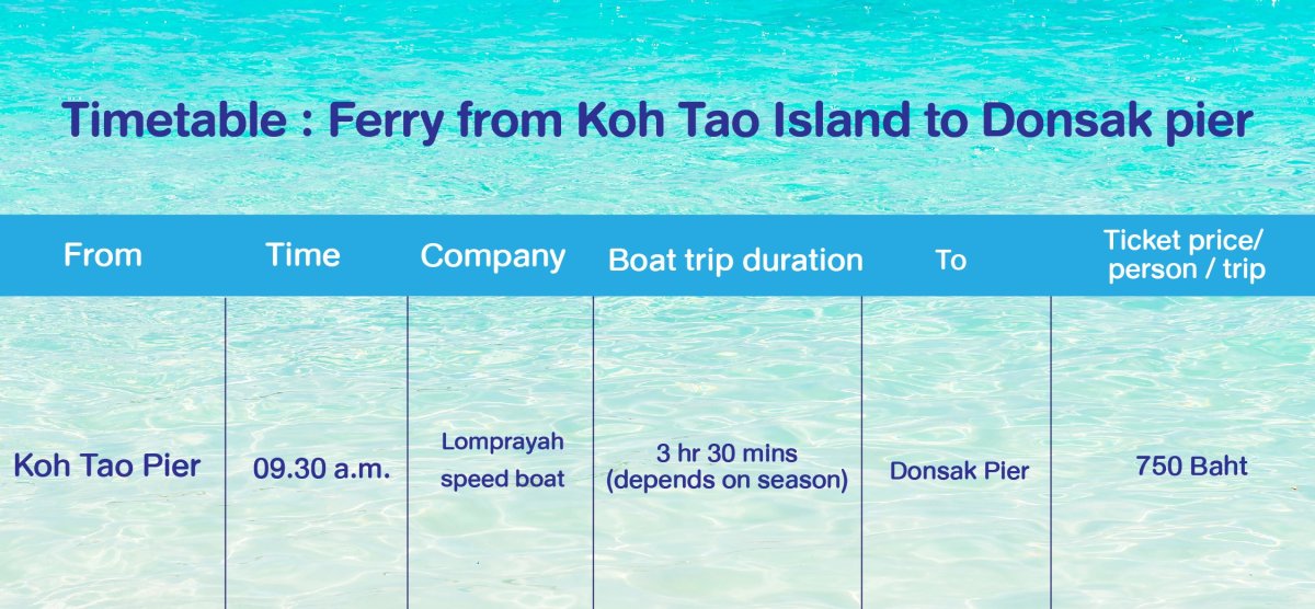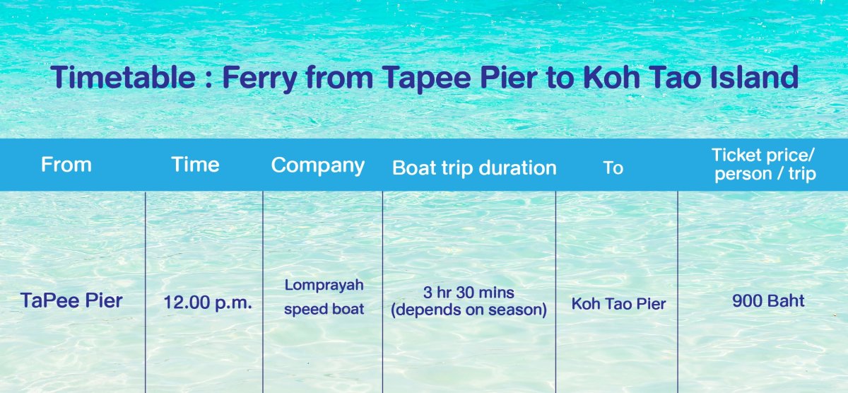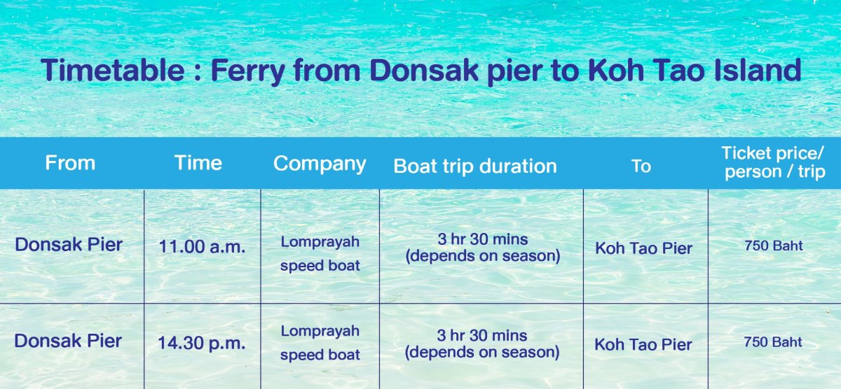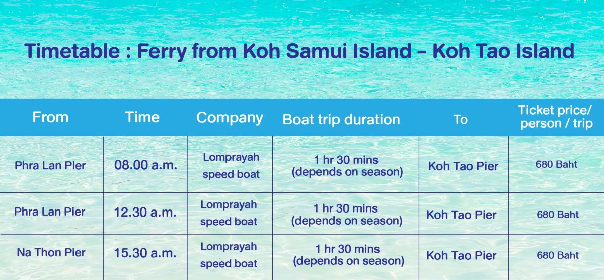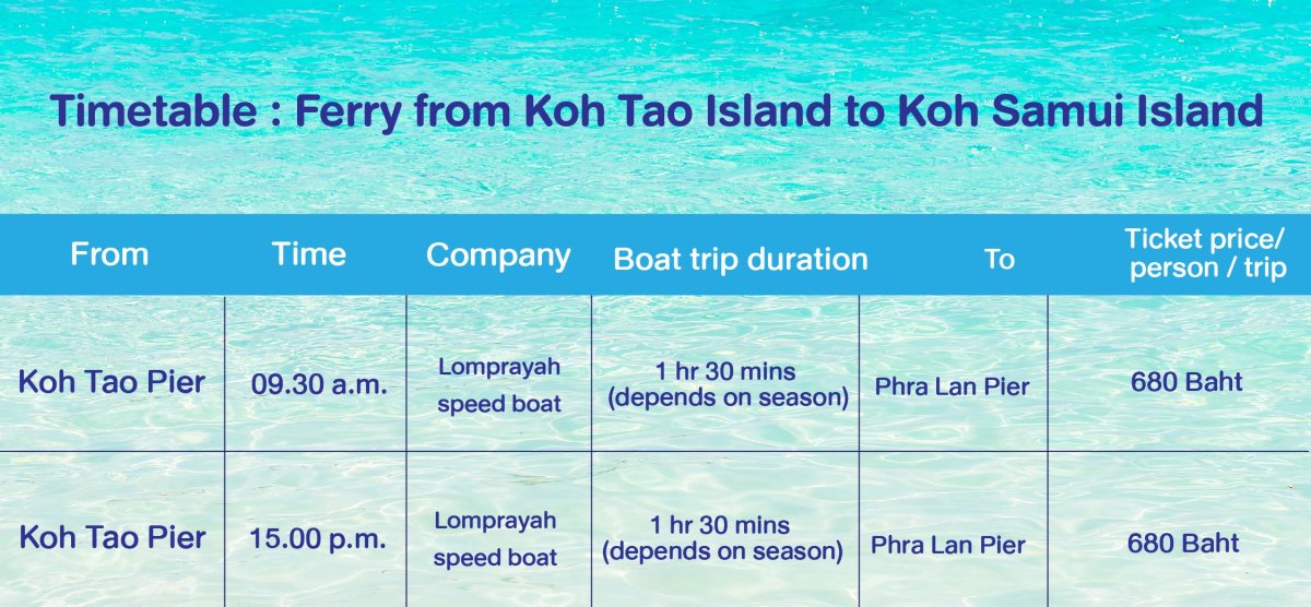 Boat schedule from Koh Tao to Koh Phangan. Please contact us for more information.