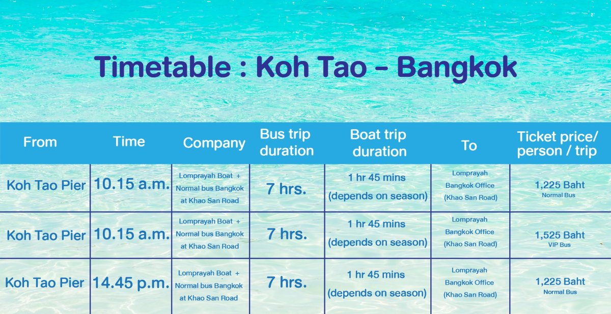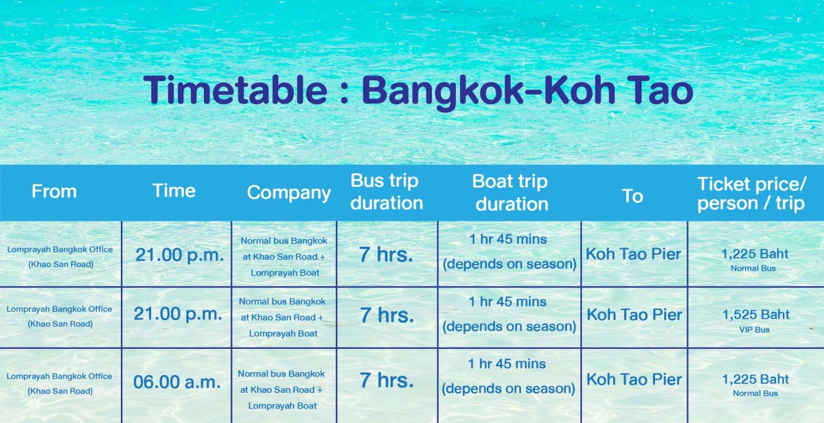 2. Traveling by bus Koh Tao from Bangkok, Khao San Road, there is only one company operated name Lomprayah high speed boat company