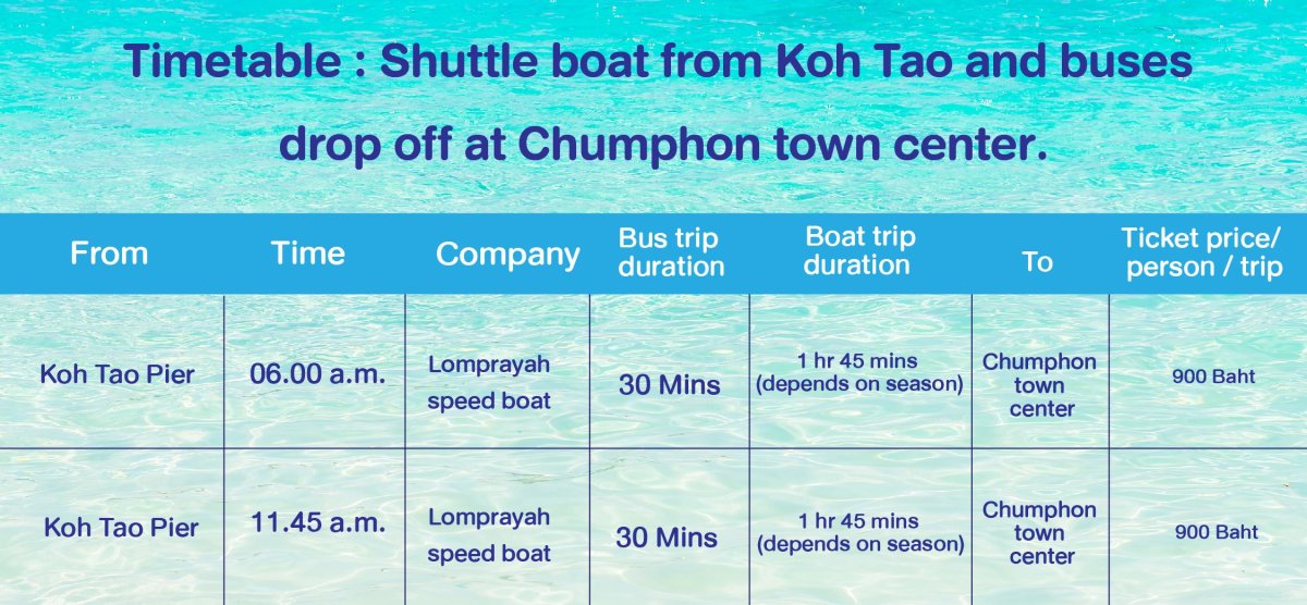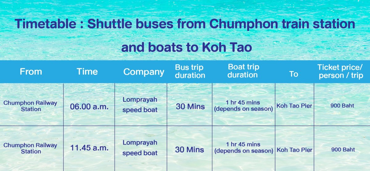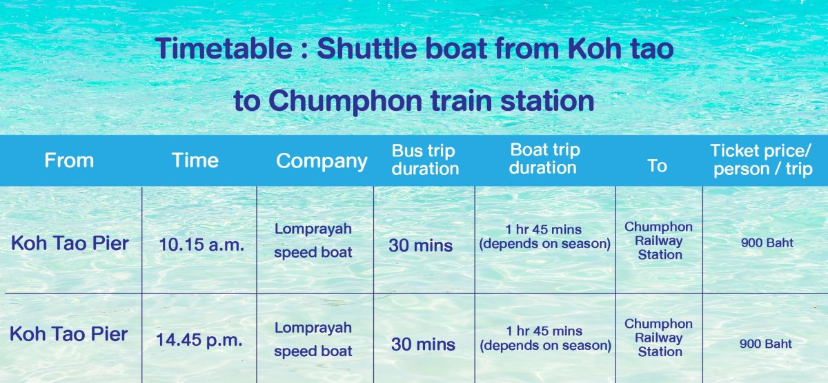3. Traveling by train to Koh Tao, get off at Chumphon Railway Station or pick up at Chumphon town center