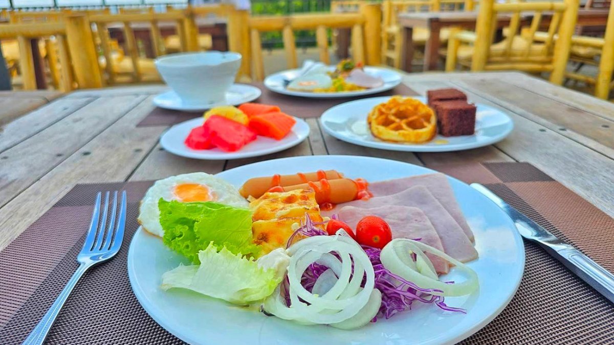 Breakfast at Dusit Buncha From having been to many resorts in the Gulf of Thailand, most of the time the breakfast menu is quite plentiful, but here there is a fair amount, but it's considered not a lot. The menu tastes average. There's a very delicious galangal salad with chicken. The bread stays the same and doesn't change.