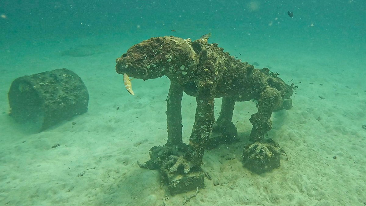 Picture of a giant chameleon Who comes to swim at this point? You can stop by and take photos. It is in the shape of a large chameleon. Set it under water
