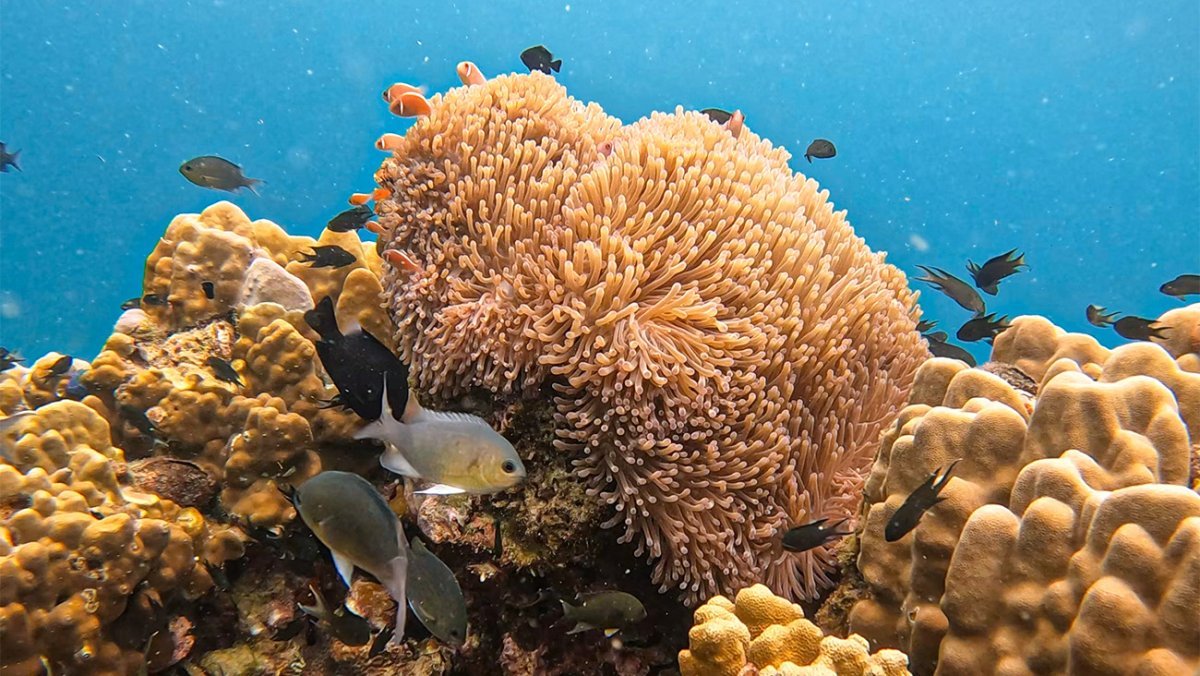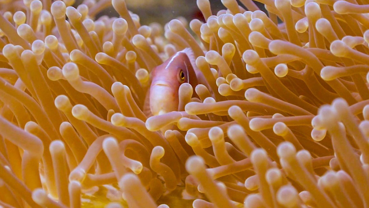 Koh Tao, in the Gulf of Thailand, has quite a lot of Indian clownfish. Indian clownfish are not like clownfish. Andaman, there is no white stripe in the middle. The whole body is orange.