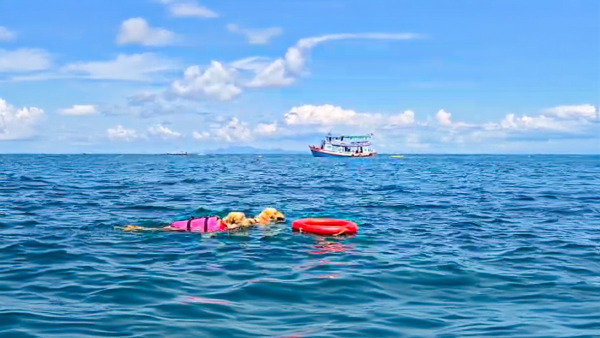 Who did you meet today? Famous Koh Tao stars Fanta Gang Beagle dog Come on a snorkeling trip. Anyone who wants to come snorkel with dogs is recommended to make a reservation in advance. It's a long time. If you come and contact the island, you probably won't get a queue.