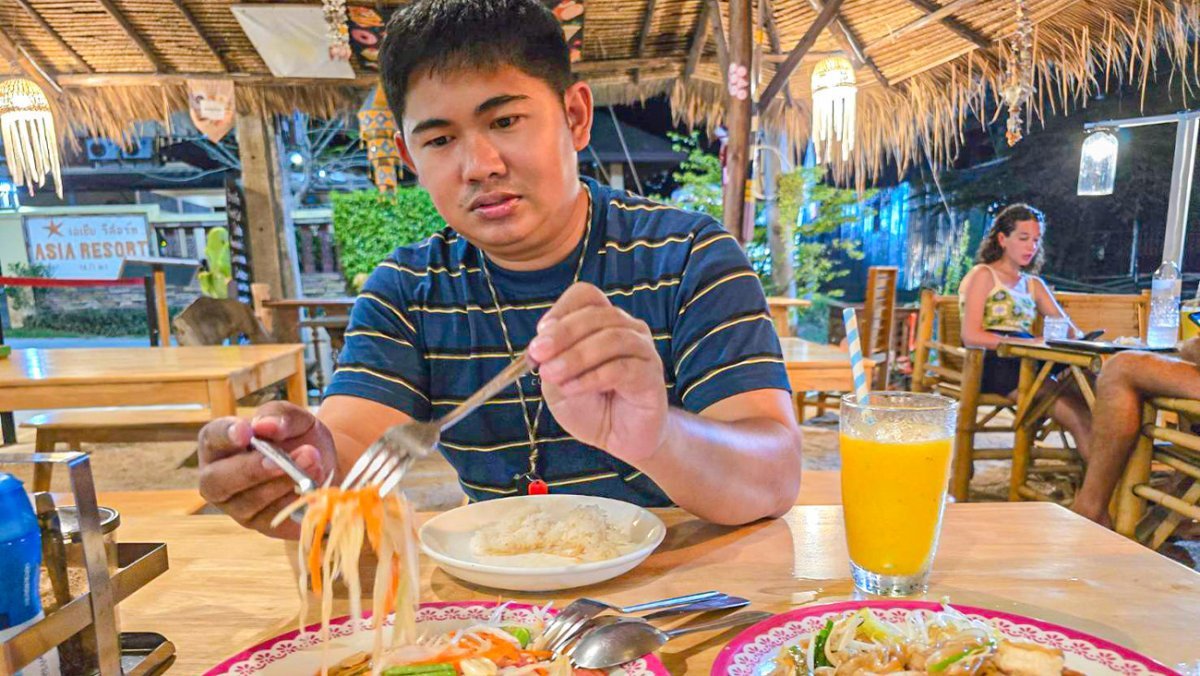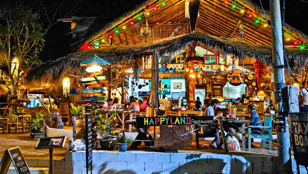 Today's dinner I must give it to this restaurant. Happy Land is in the Sairee Beach area. It's delicious, not expensive, not expensive at all. Tam Thai is 80-baht, Pad Thai is about 100 baht. I'm tired of seafood and want something more traditional. The food prices at the resort are very high. Not exaggerating, a plate of seafood with basil costs 350 baht. Every meal, we all come to eat at restaurants outside the resort.