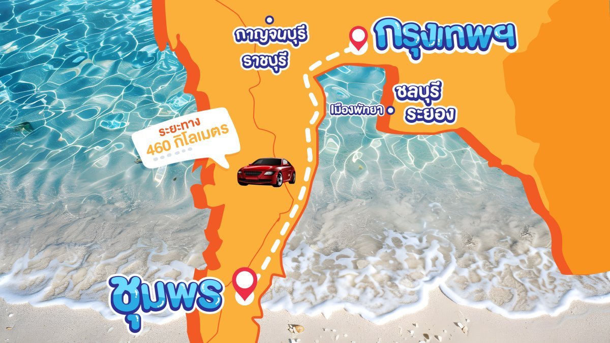 Start drive by car from Bangkok to Chumphon Keep stopping by. Passing by Amphawa Floating Market Stopped to eat or buy some snacks and coffee. Before leaving by boat to Chumphon