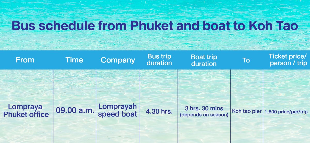 Traveling from Phuket to Koh Tao for convenient travel especially tourists who do not have a car can travel with a boat company by bus from Phuket (boat ticket included) to Koh Tao. The destination will drop off passengers at Mae Haad Pier, Koh Tao