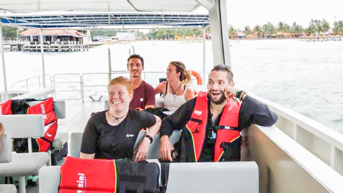 The boat drops off passengers at Lotatray Pier, which is the pier on Koh Rong. To travel to the resort, there will be a minibus service to the accommodations at the resort.