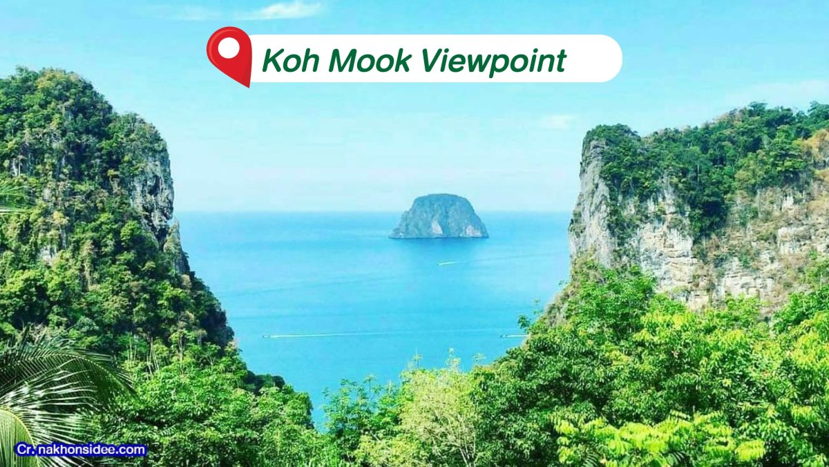 The viewpoint is behind the fishing village of Koh Mook. You can hire a sidecar motorbike taxi to drop you off at the foot of the mountain and walk uphill into the mountains. Interspersed with natural forests and rubber plantation forests, a reasonable walking distance but it's worth it with a beautiful panorama viewpoint in Koh Mook. The view of the island and the blue sea in the foreground is impressive.