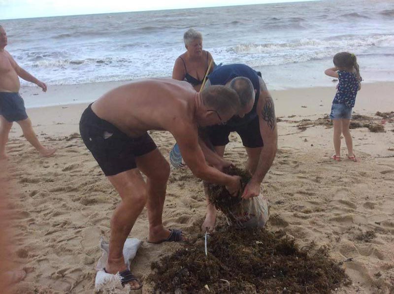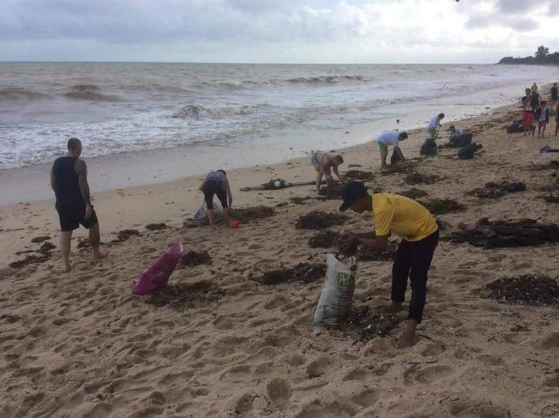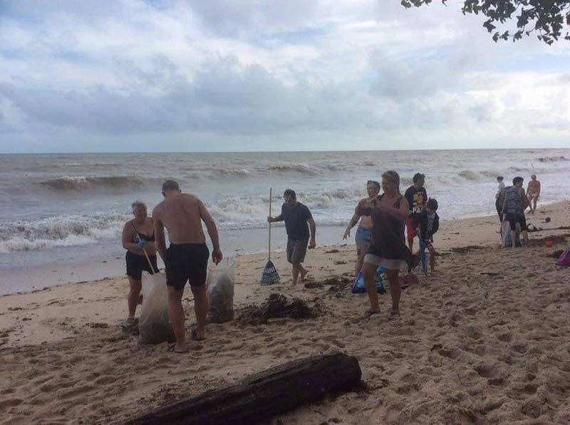 ชาวบ้าน-นักท่องเที่ยวต่างชาติ ร่วมแรงแข็งขันเก็บกวาดหาดสมุย ภาพประทับใจหลังพายุปาบึกผ่านพ้นไป