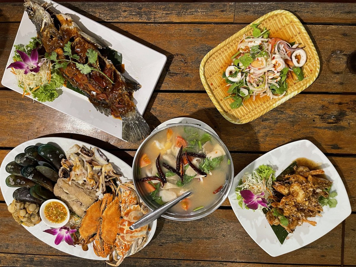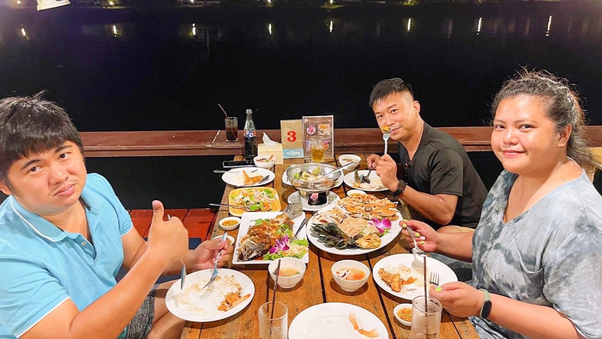 มื้อเย็นวันนี้เราจอง ร้านอาหารไอยราซีฟู้ดไว้ อาหารจะเป็นเมนูจานเซต ตกคนล่ะ 300 บาท มีรถมารับที่รีสอร์ทด้วยนะ เวลารถรับสามารถนัดกับทางร้านได้เลยว่าจะให้มารับกี่โมง มีล่องเรือชมหิงห้อยฟรีด้วย