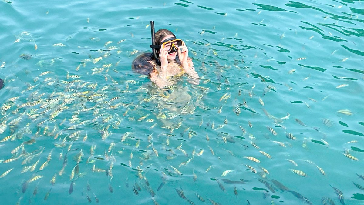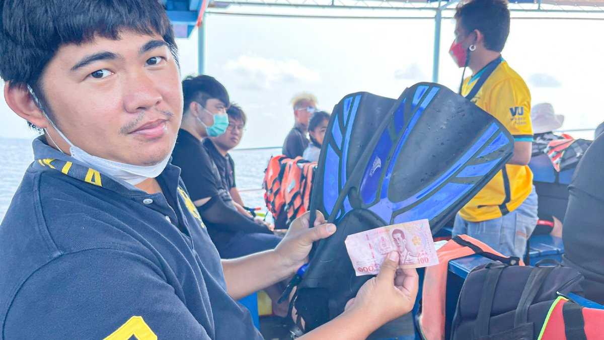 เราไม่มีฟินมา ไม่เป็นไรเข้าที่สต๊าฟเรือได้นะคะ ประมาณ 100 บาท จะได้ลงไปดำน้ำถ่ยรูปได้สะดวก