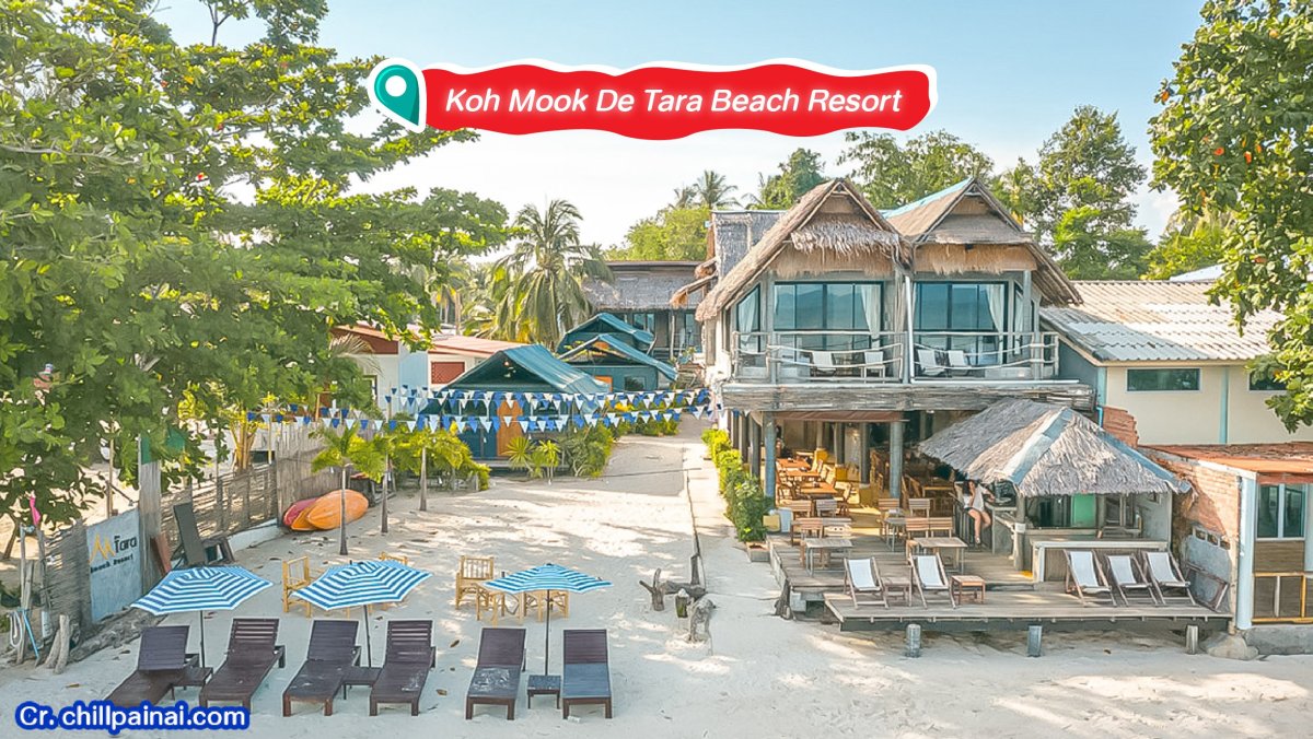 เกาะมุกเดอธาราบีชรีสอร์ทที่พักริมหาดบรรยากาศ มีความสวยงามเงียบสงบและมีเสน่ห์ไม่เหมือนใครมีห้องพักให้เลือกหลากหลายสไตล์ไม่ว่าจะเป็นบ้านพักและเต็นท์หรูที่มาพร้อมสิ่งอำนวยความสะดวกครบครันและหันหน้าเข้าสู่ทะเล บริการนวด และ ห้องอาหาร คอยอำนวยความสะดวกแก่ผู้เข้าพัก