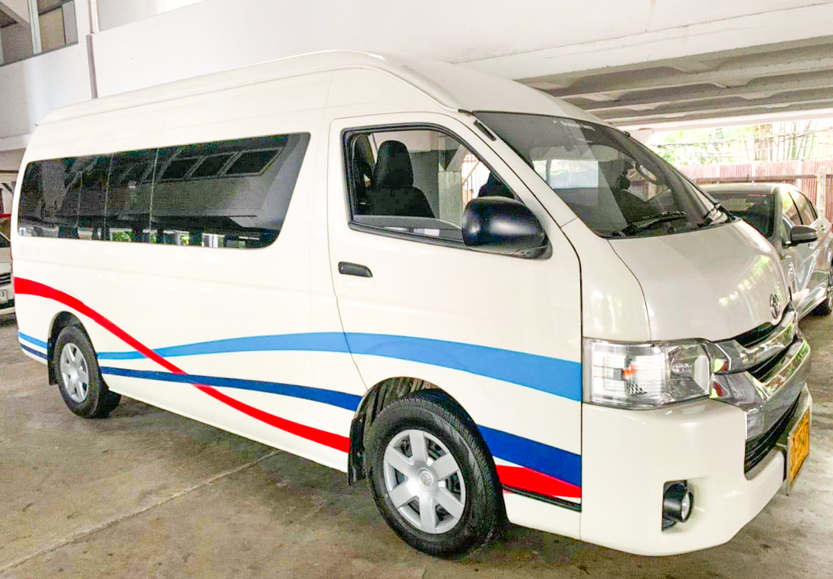รถตู้จะเป็นรถตู้ของทางบริษัทเรือจะไปจอดรอรับผู้โดยสาร เป็นรถตู้ขนาด 10 ที่นั่ง ปรับอากาศ จะไปรอรับเฉพาะผู้โดยสารที่จองไว้ล่วงหน้าเท่านั้น รถจะวิ่งมาส่งผู้โดยสารที่ ออฟฟิศเรือที่ท่าเรือแหลมศอก เพื่อเชคอินและลงเรือรอบ 14.20 น เดินทางไปยังเกาะกูด