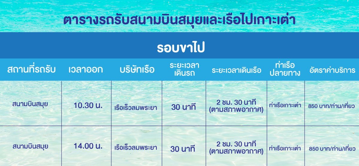 การเดินทางจากสนามบินสมุยไปเกาะเต่า สอบถาม 0924198500