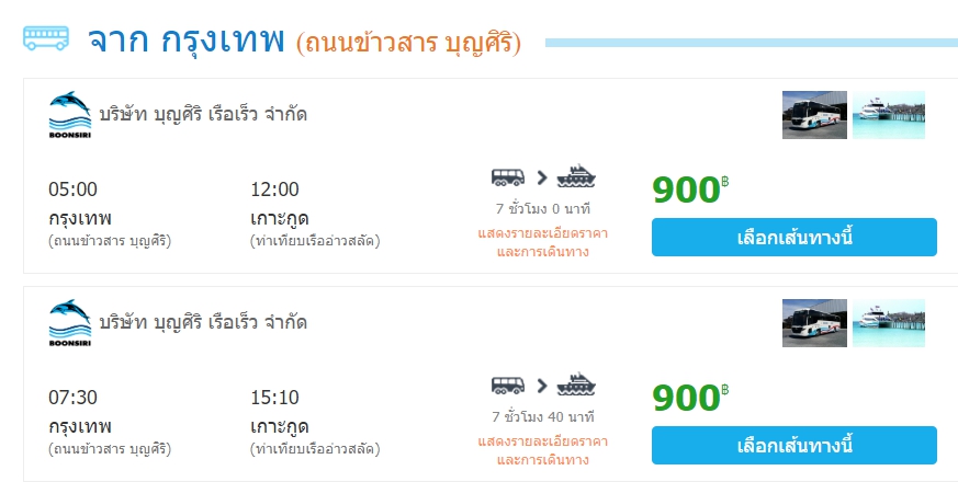 2.การเดินทางโดยรถบัส จากถนนข้าวสาร โดยบริษัทบุญศิริเรือเร็ว